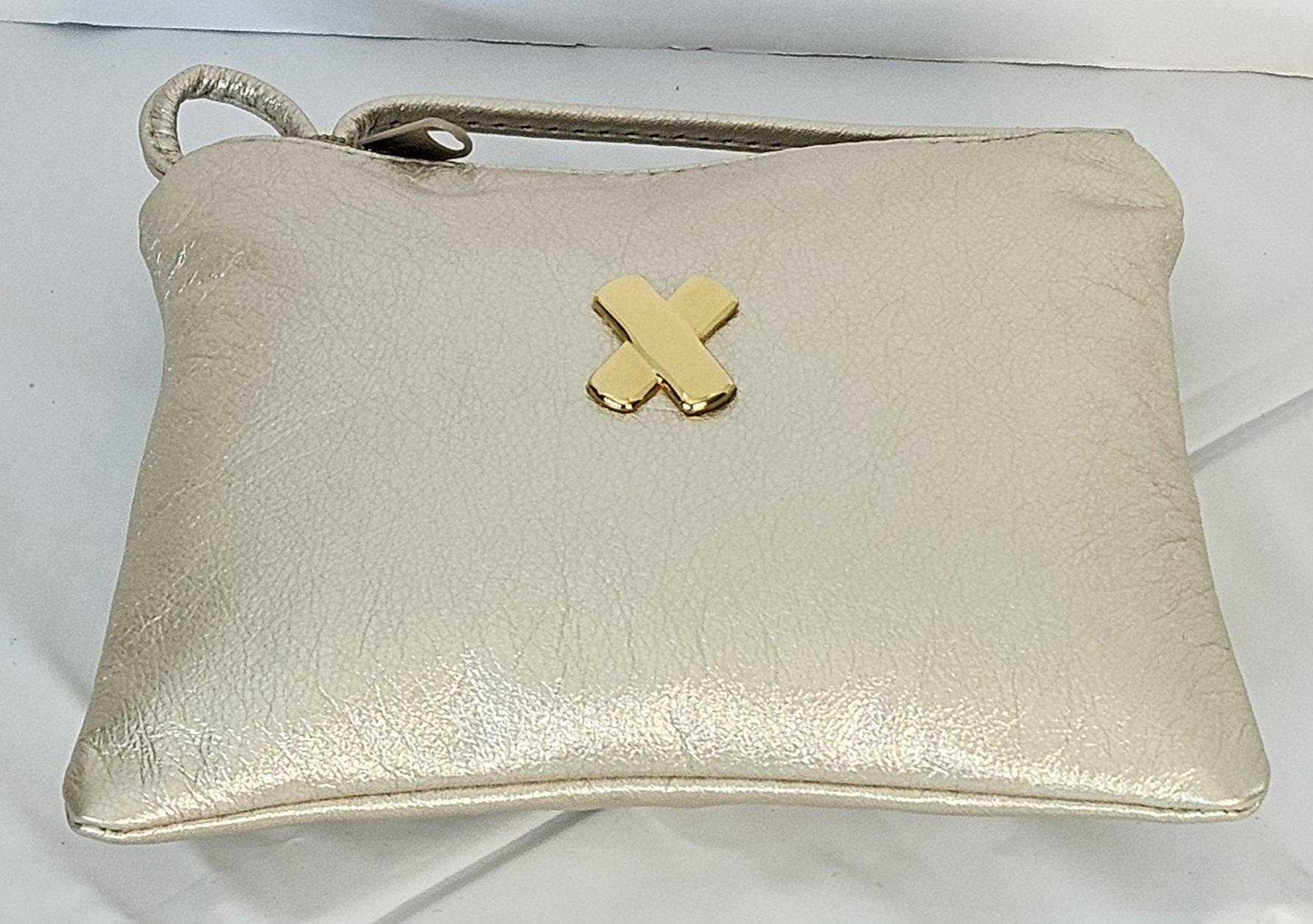 Beige metallic with gold matel X,Crossbody Handbag#TR3302Beigemg-X,Purses for girls, Genuine Leather. Made in USA
