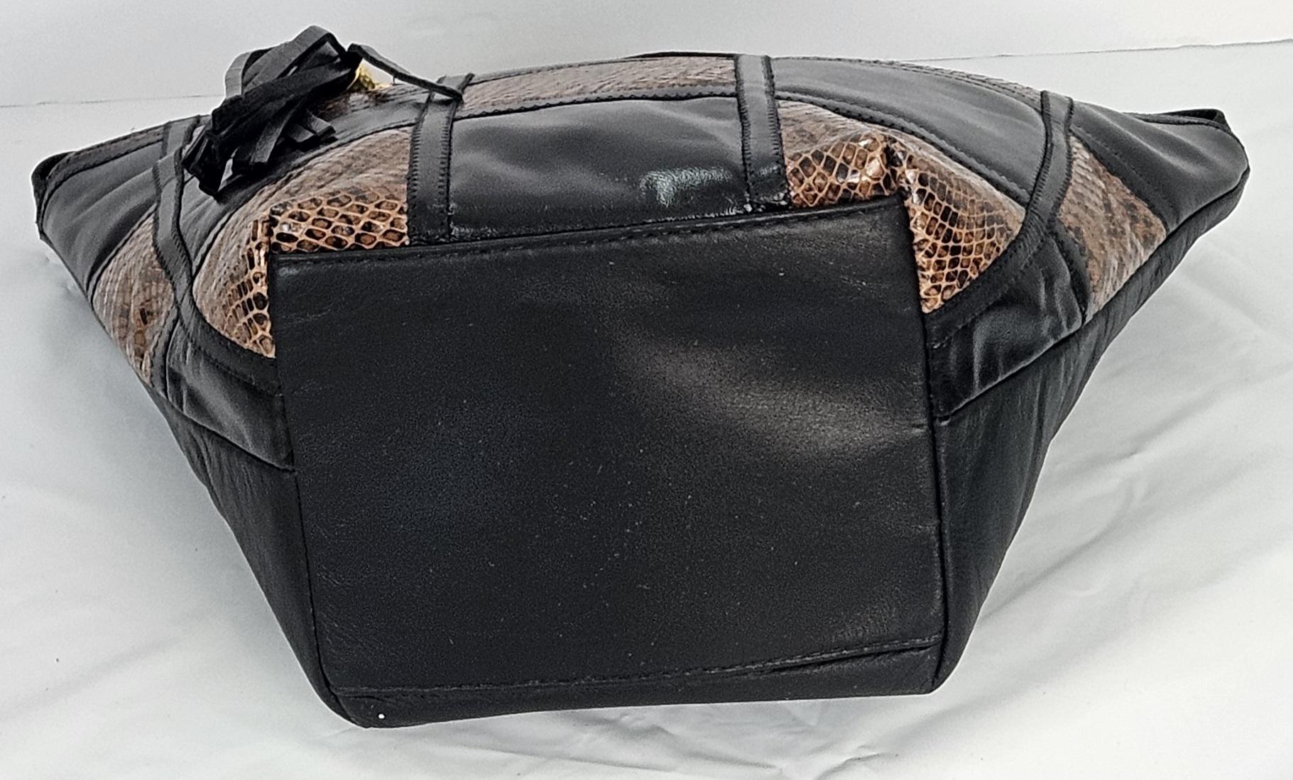Black & Brown Zigzag Genuine Leather Handbag - Made in USA
