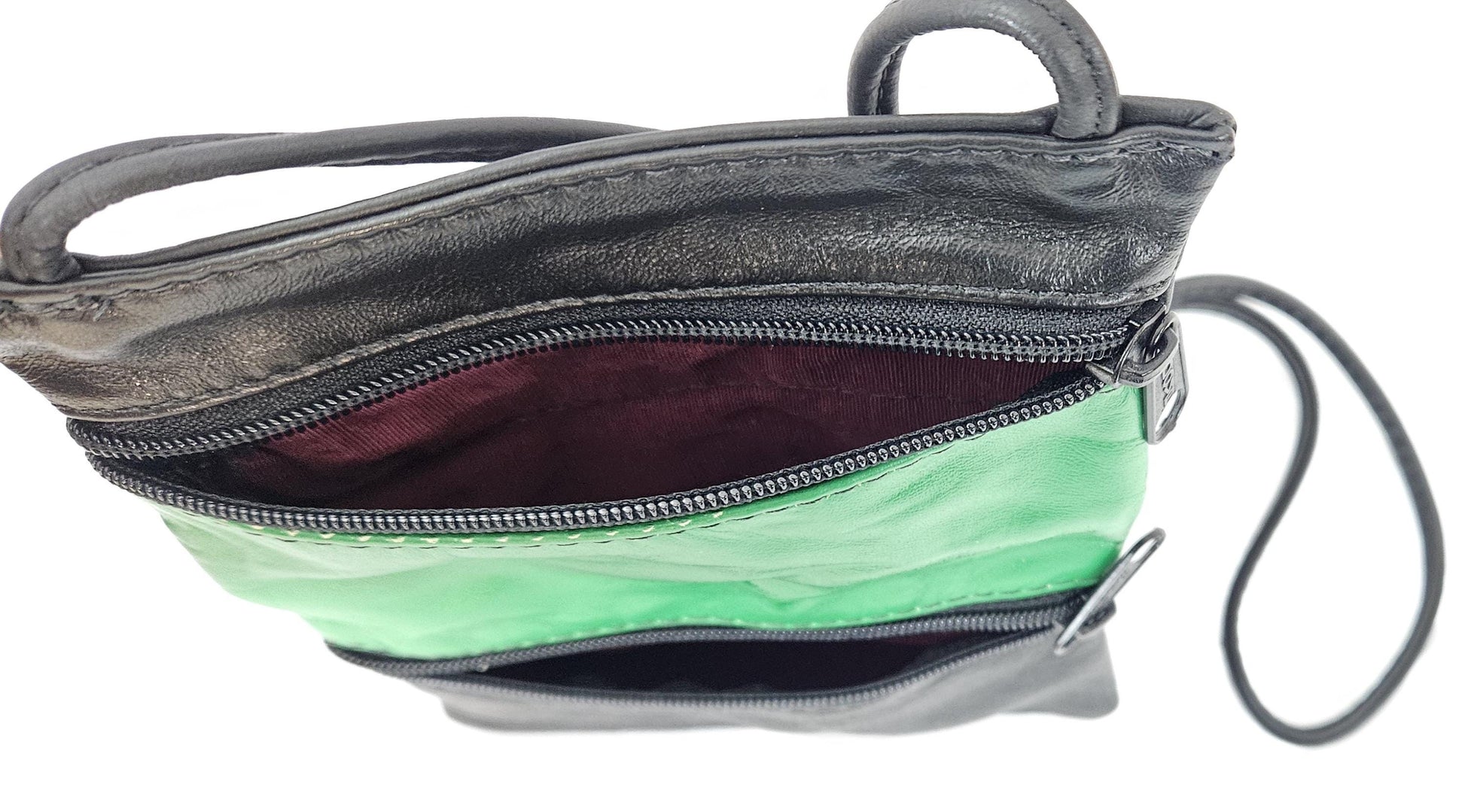 Black & Green Leather Crossbody Bag - Handmade in USA