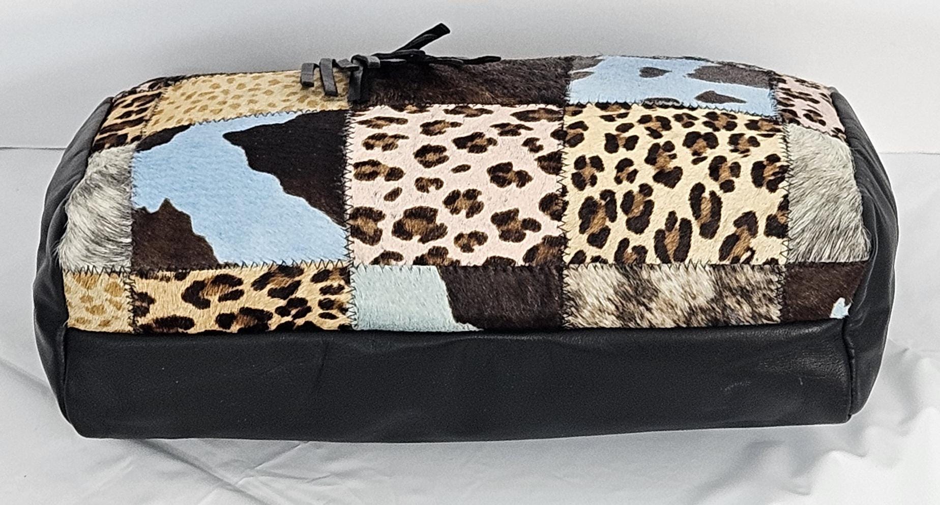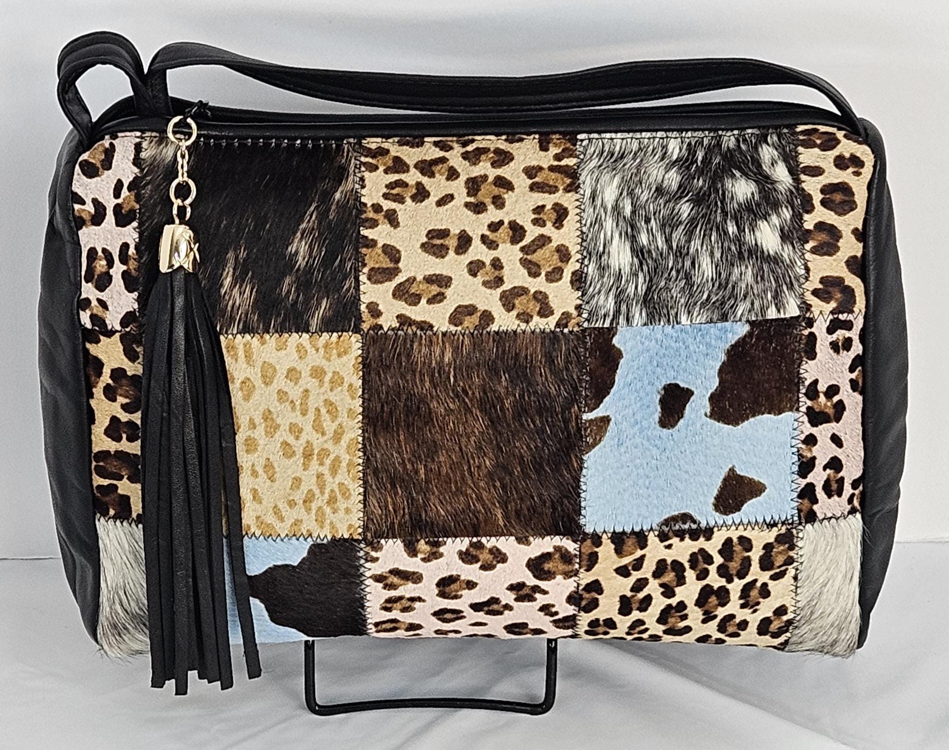 Black with Multi Print Zigzag square.Genuine Leather Hand Made Handbag #TR3018BMP-3.Made in USA.